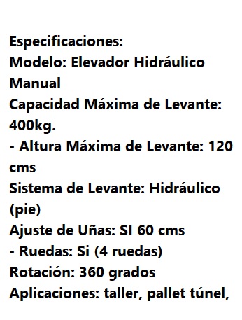 APILADOR MANUAL HIDRAULICO 400 KG